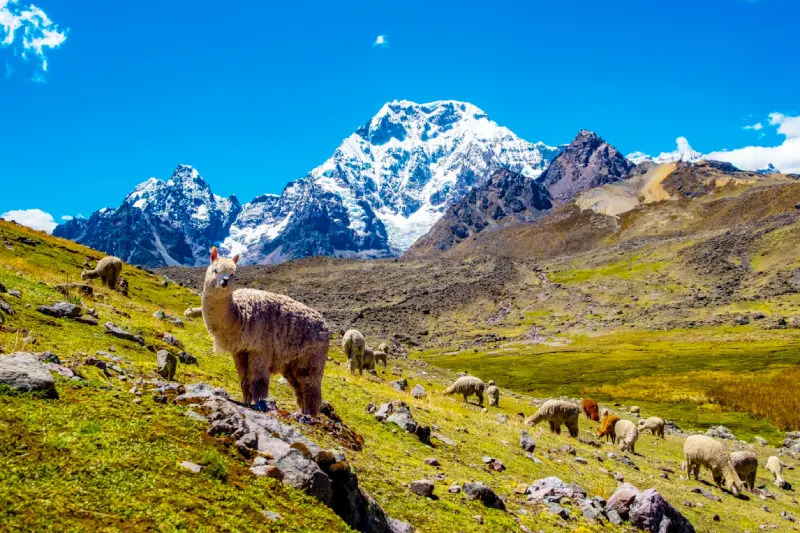 En un día haremos el recorrido del tour 7 Lagunas del nevado del Ausangate, es una hermosa caminata al sureste del Cusco podrás ver las 7 lagunas: Otorongo Hembra, Otorongo Macho, Puca Cocha en la cordillera negra, Alca Cocha, Q’omer Cocha, Azul Cocha y Pata Cocha que se encuentran en la cordillera del Vilcanota cuyos colores son turquesa, verde y azul; además, está cerca de las montañas de la codillera del Vilcanota principalmente del nevado Ausangate.